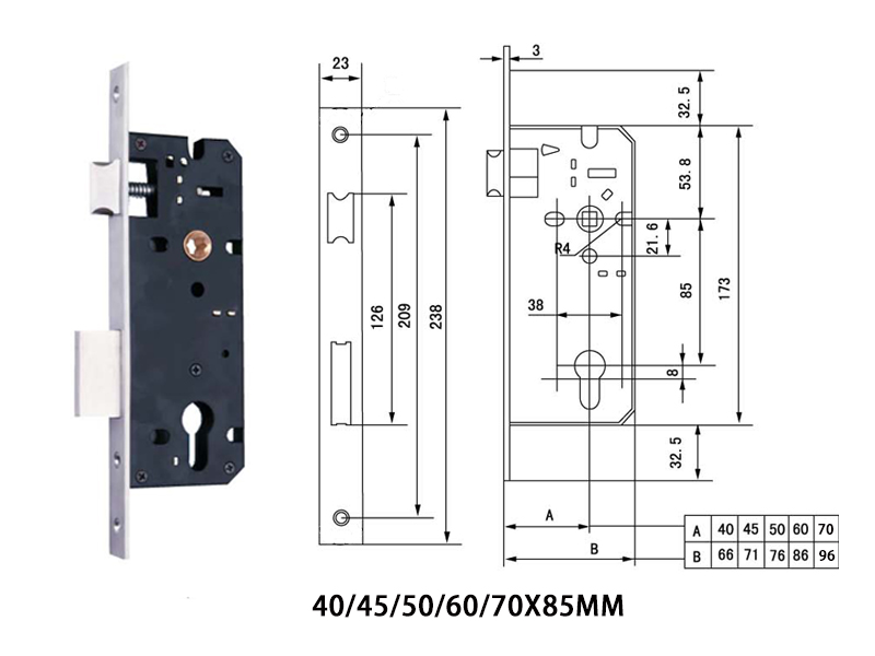 RML-07铜双舌锁体,主要有40/45/50/60/70X85,五种规格