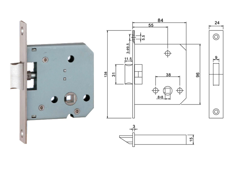 55ZL单舌锁体通常用于通道门,防火门,管井锁,不能反锁