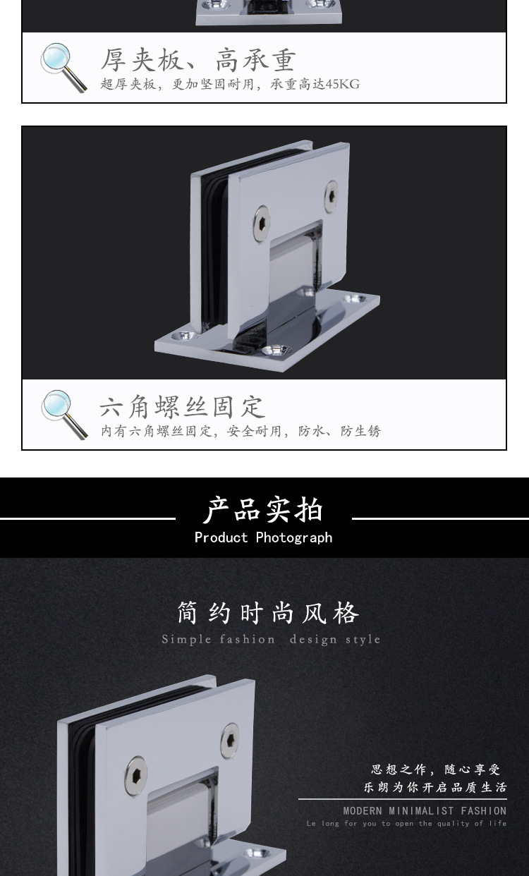 3、产品名称:90度玻璃对墙 浴室玻璃合页