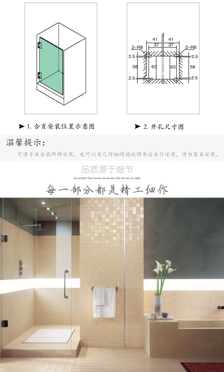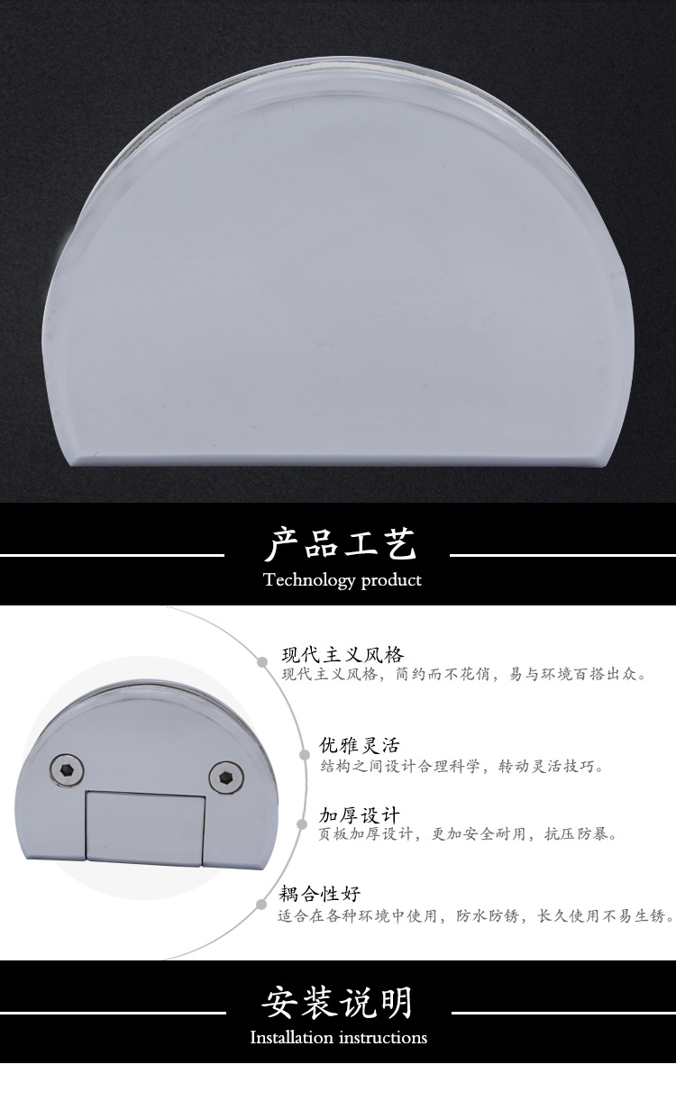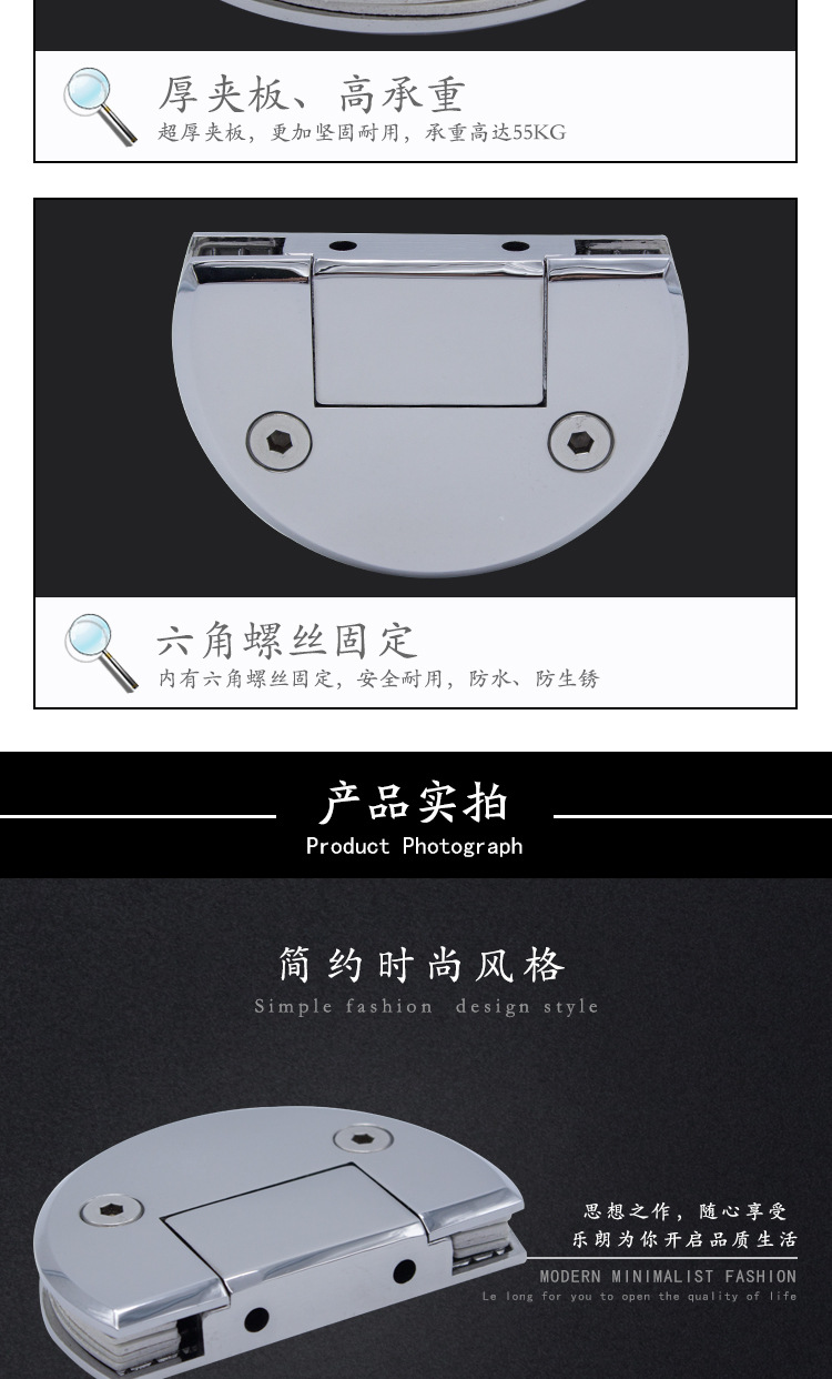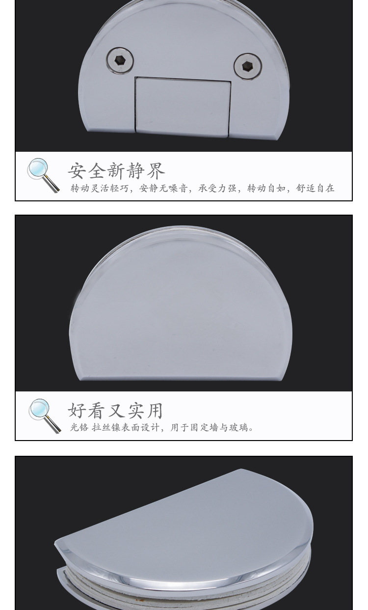 2、各种玻璃/木板隔断的固定.玻璃/木板可以与地面垂直也可以平行安装.适用于各种玻璃柜的固定连接.夹6-12mm玻璃