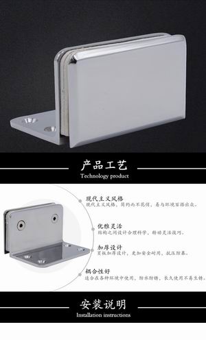 2、各种玻璃/木板隔断的固定.玻璃/木板可以与地面垂直也可以平行安装.适用于各种玻璃柜的固定连接.夹6-12mm玻璃