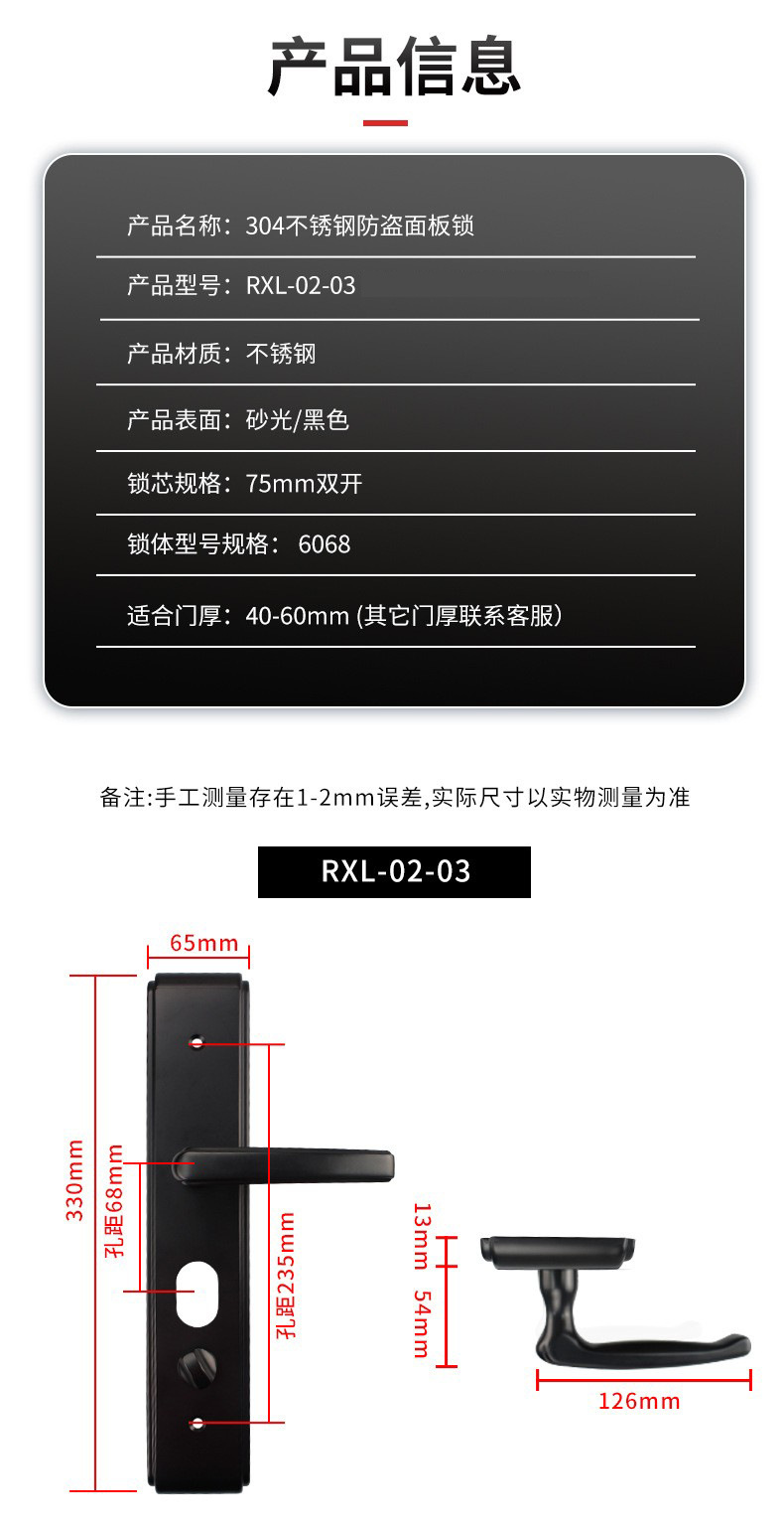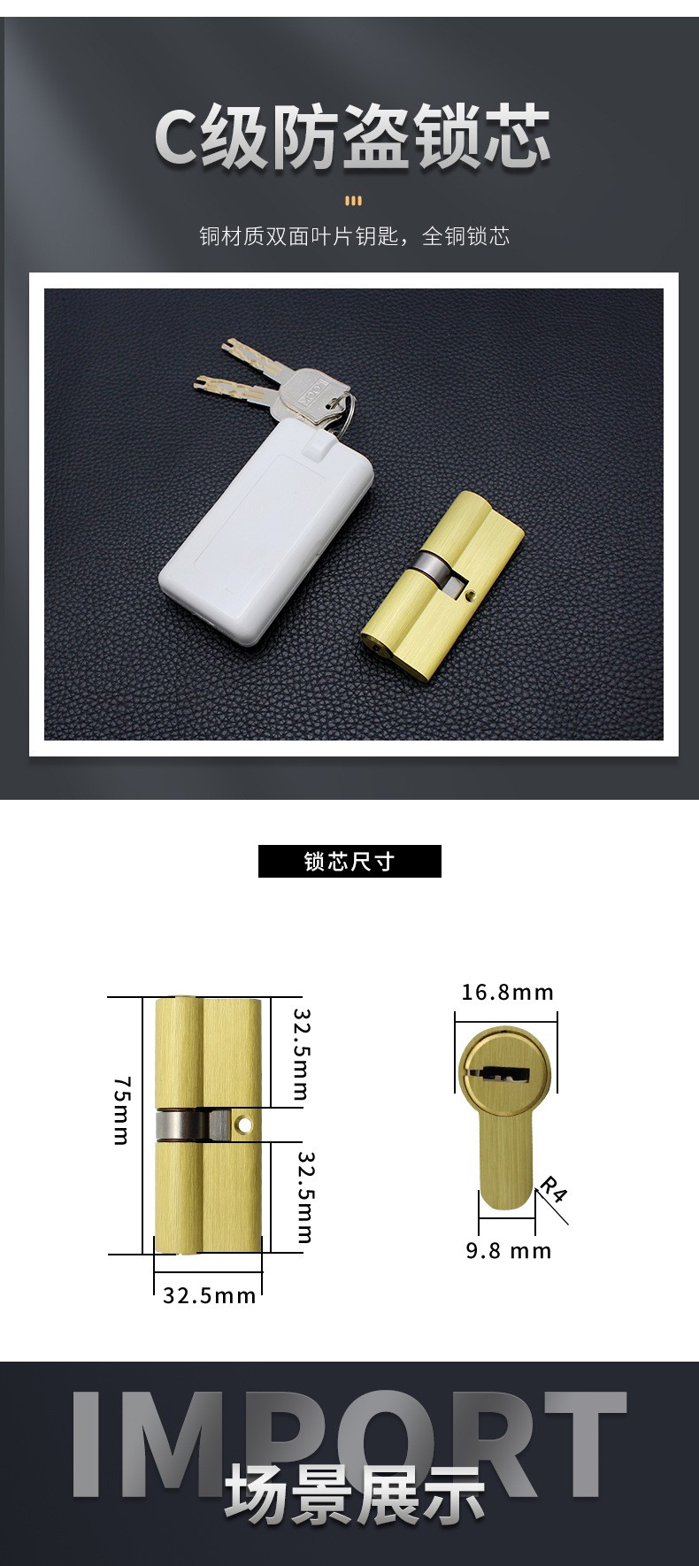 RXL-02-03 黑色防盗门锁超C级锁芯