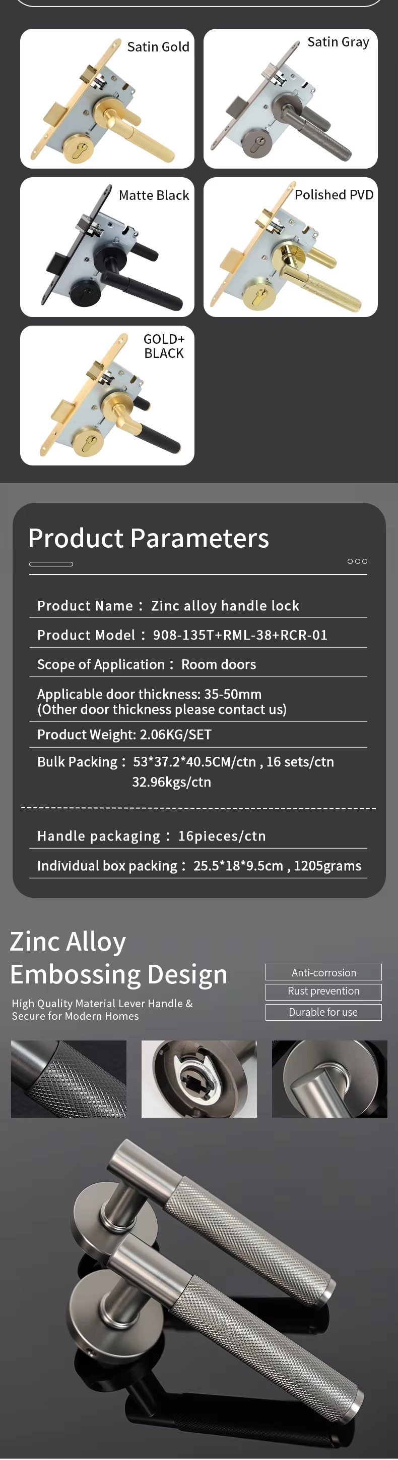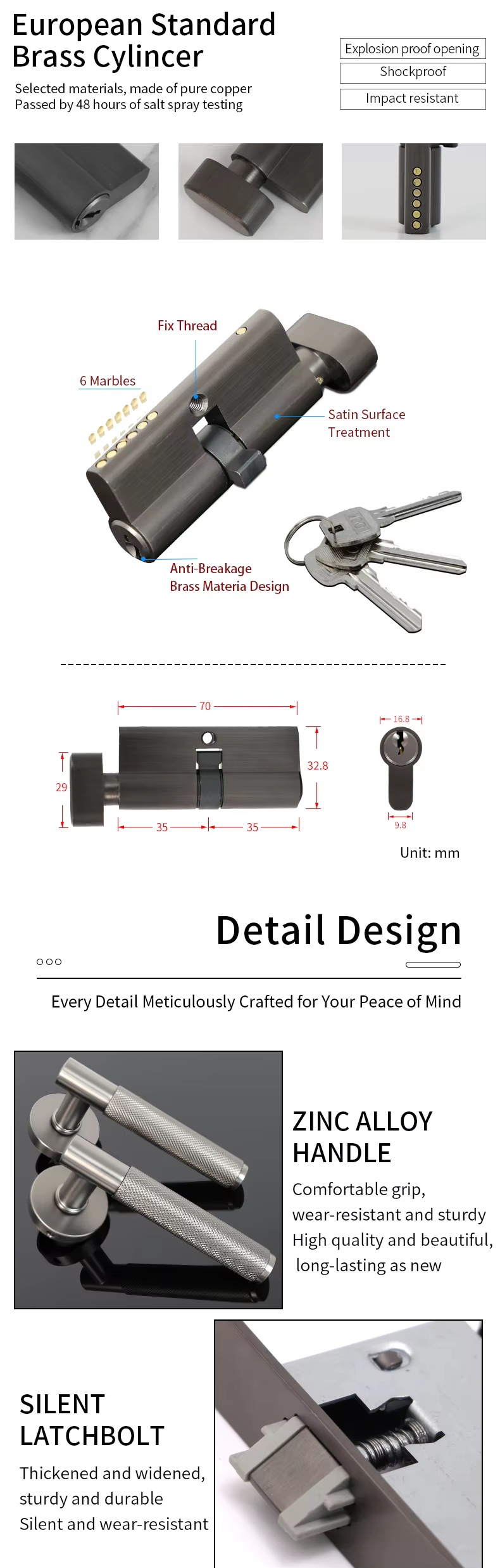 908-135T Zinc Alloy Knurl Solid Door Handle Lock