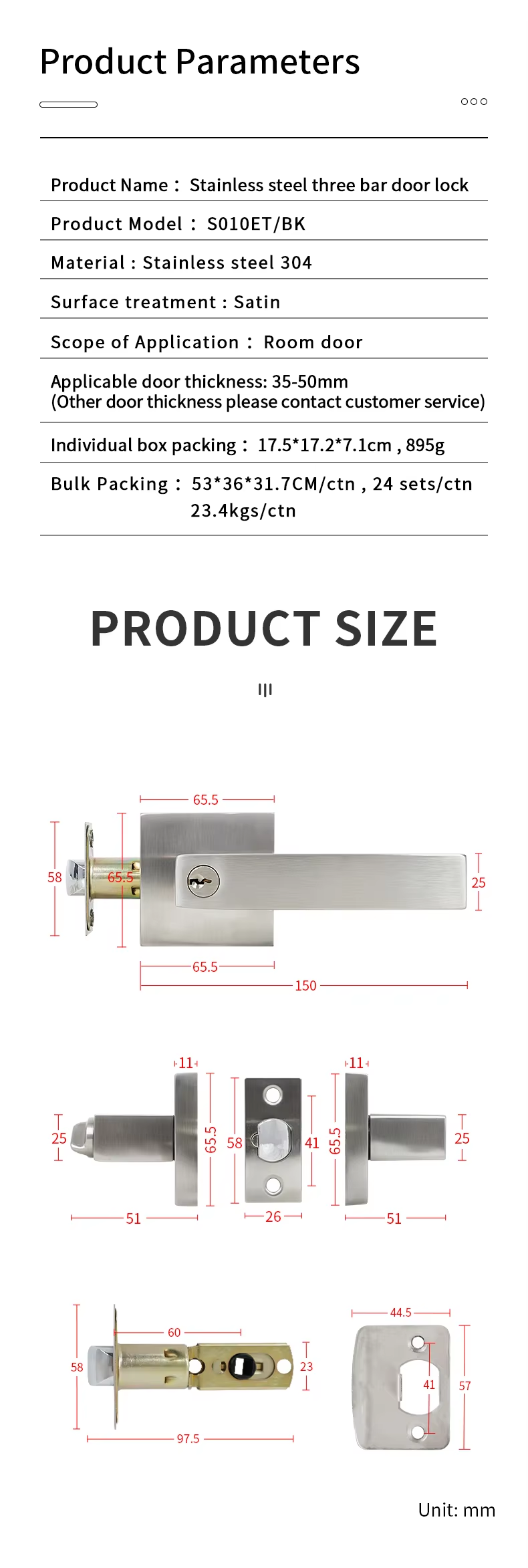 S010ET BK American Standard Square Type Tubular Heavy Duty Lever Lock
