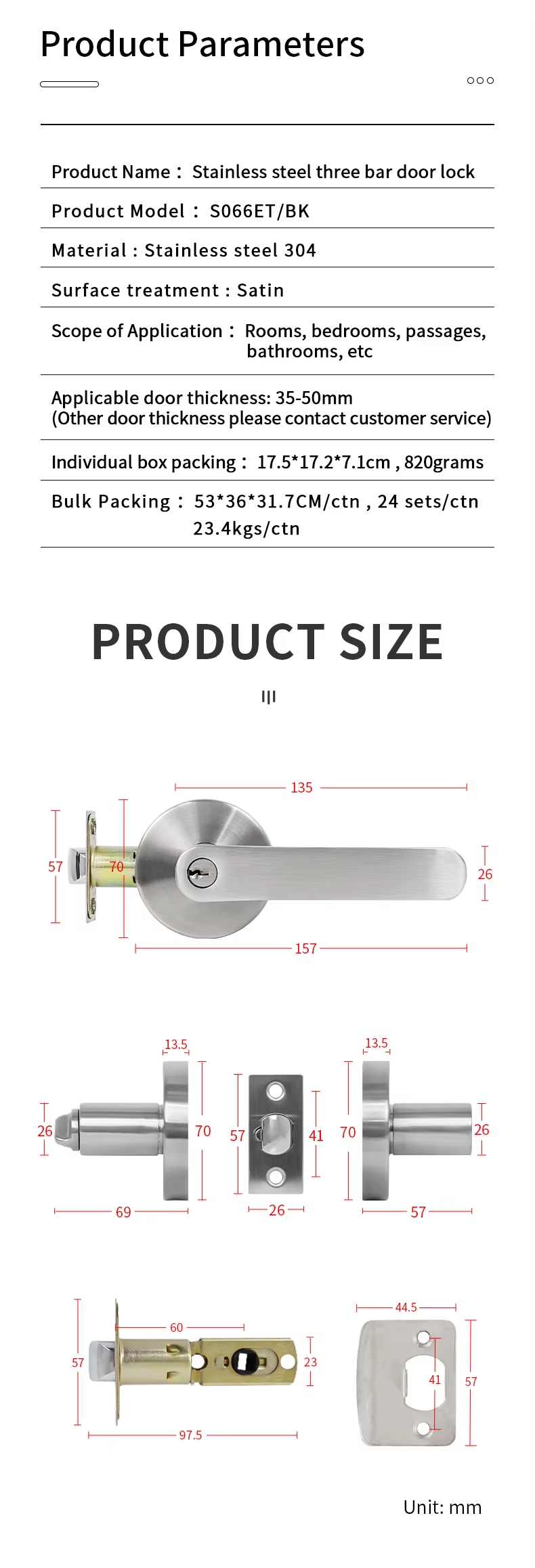 S066 Stainless Steel 304 Anti-rust American Triple Point Door Lock