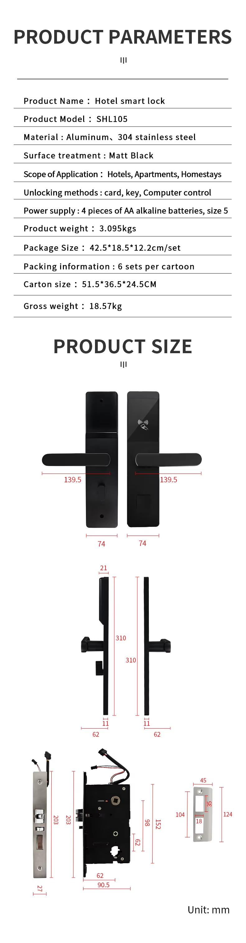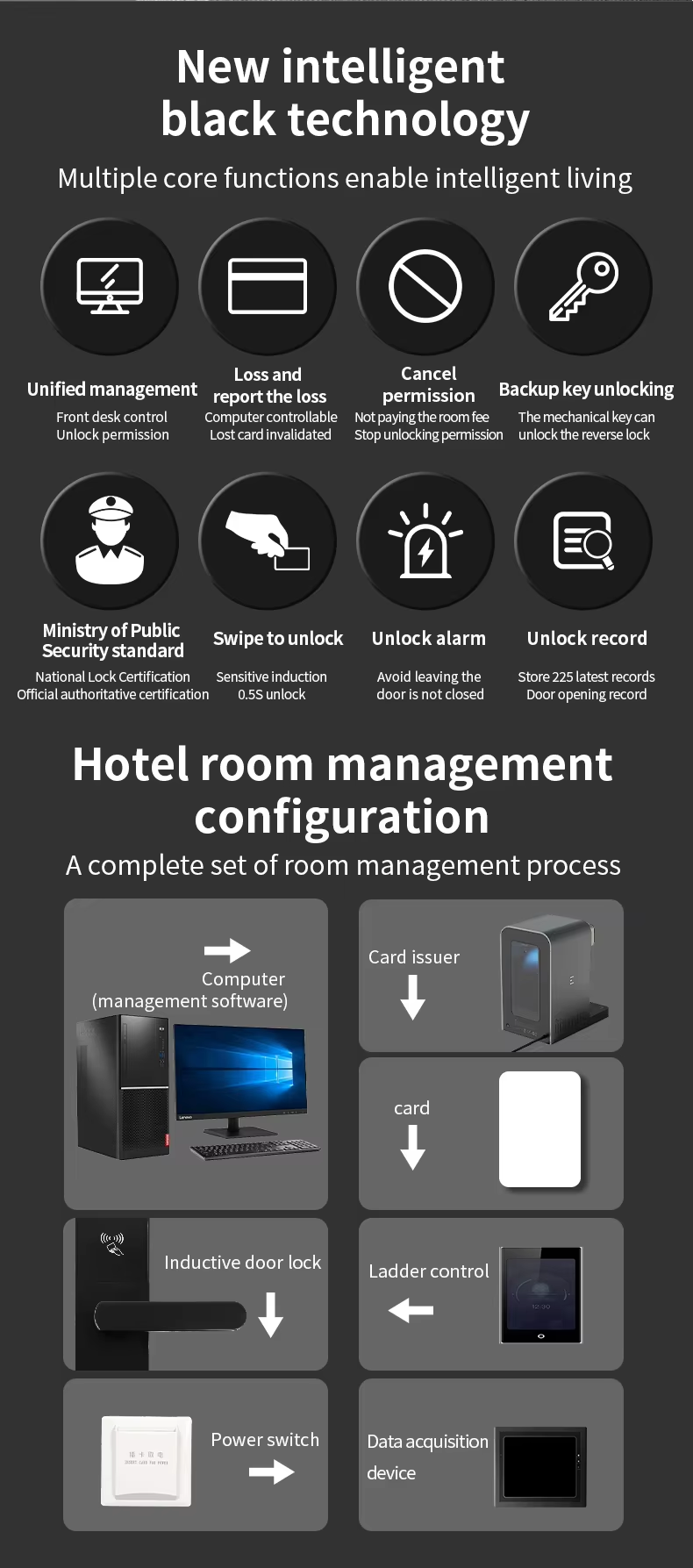 SHL-150 Security Matt Black Hotel Smart Electronic Lock